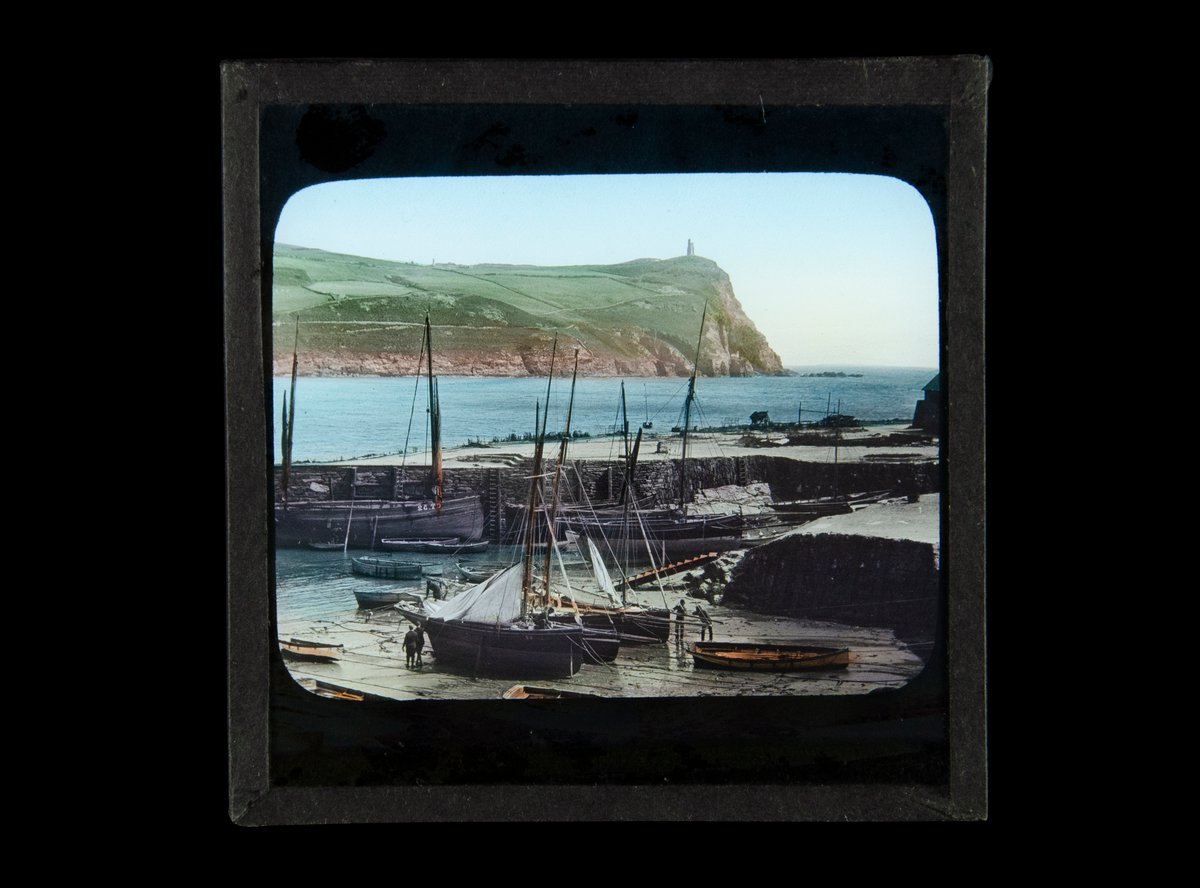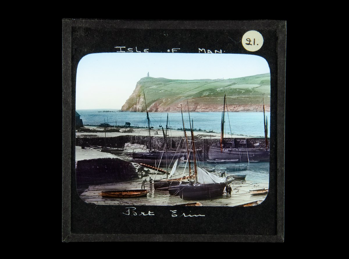 Colour magic lantern slide depicting Port Erin, Isle of Man, UK.