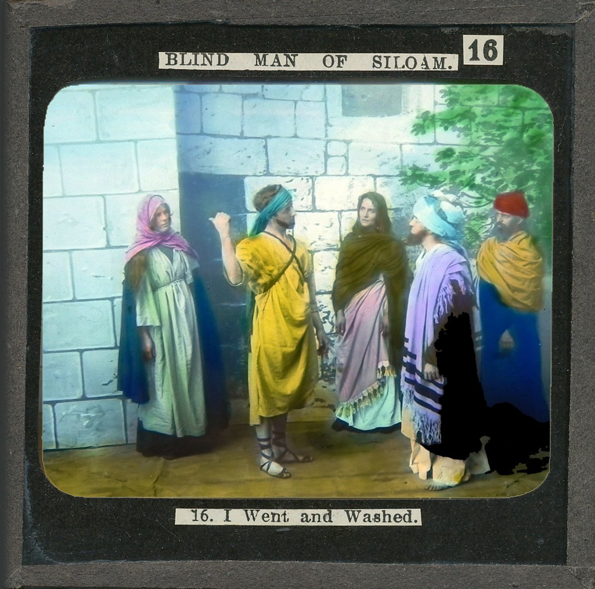 hand-coloured photographic print on glass