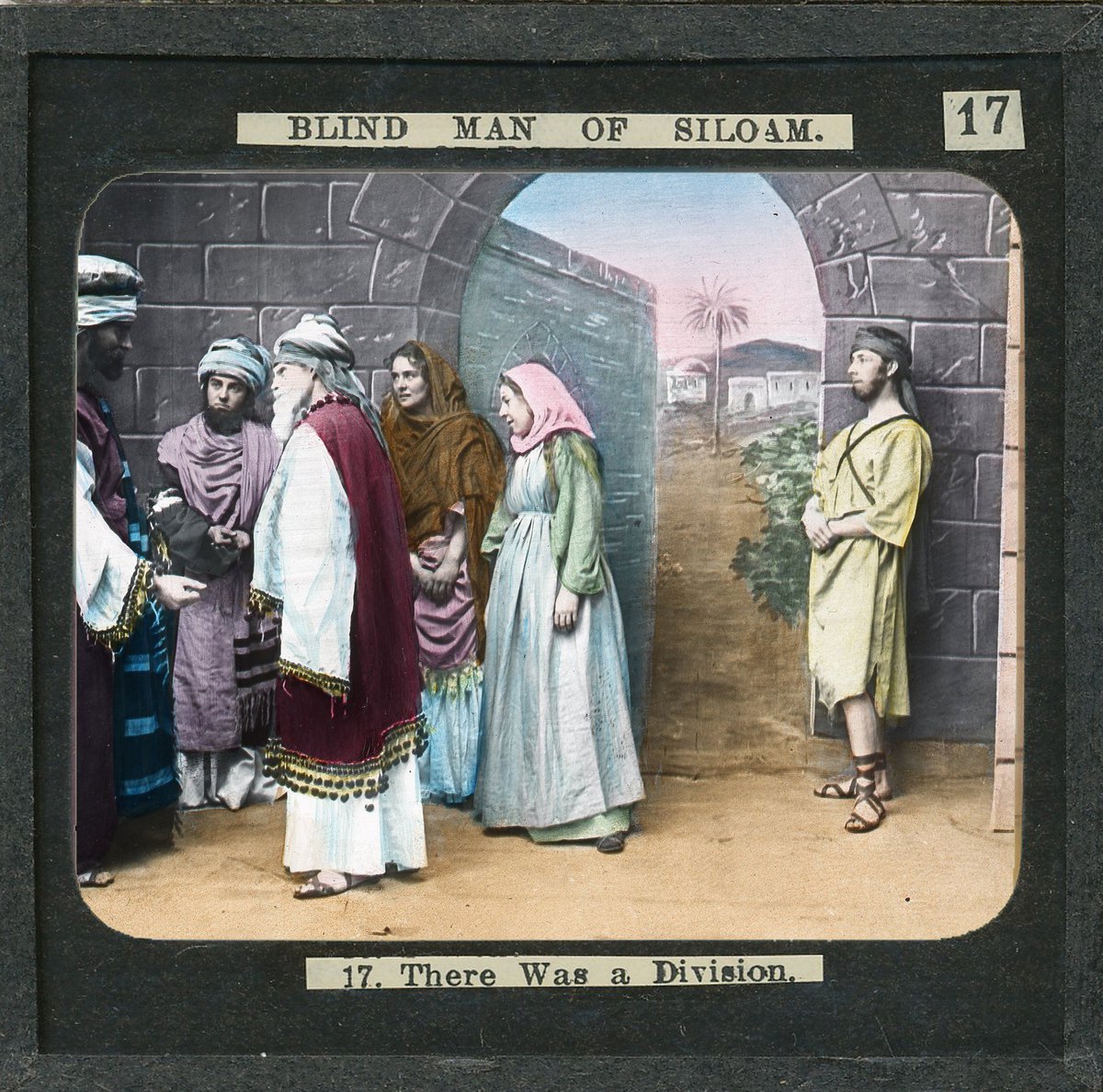hand-coloured photographic print on glass