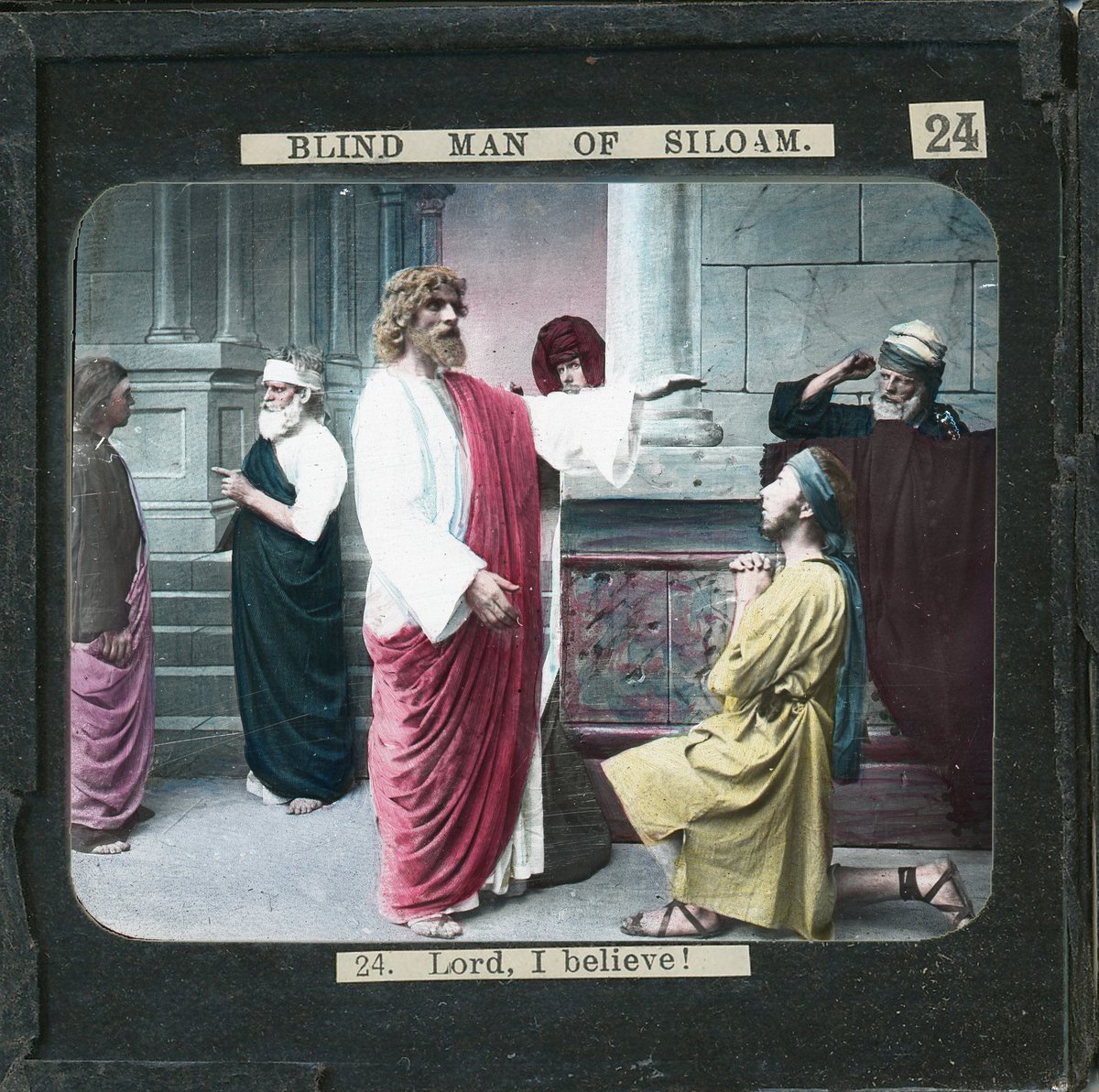 hand-coloured photographic print on glass