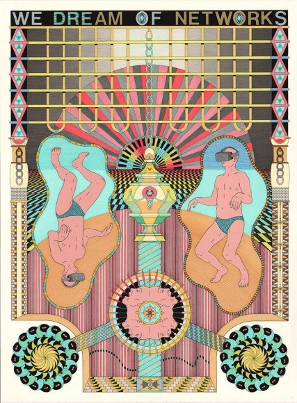 Jess Johnson was born in Aotearoa/New Zealand in 1979, and lives and works in New York. Her drawing and installation practice is influenced by science fiction, language, culture and technology. In her drawings she depicts complex worlds that combine densely layered patterns, objects and figures within architectural settings. Johnson’s drawings are often displayed within constructed environments that act as physical portals into her speculative worlds. Her video collaborations with Simon Ward have involved translating her drawings into animated Virtual Reality, thus enabling her audience to have the simulated experience of entering the hypnotic realms depicted in her drawings. Jess Johnson’s work has been exhibited Internationally in solo exhibitions at; Jack Hanley Gallery, New York; Art Basel, Hong Kong; Nanzuka Gallery, Tokyo; Talbot Rice Gallery, Edinburgh; National Gallery of Australia; Museum of Contemporary Art, Australia; Auckland Art Gallery and Christchurch Art Gallery, New Zealand.
