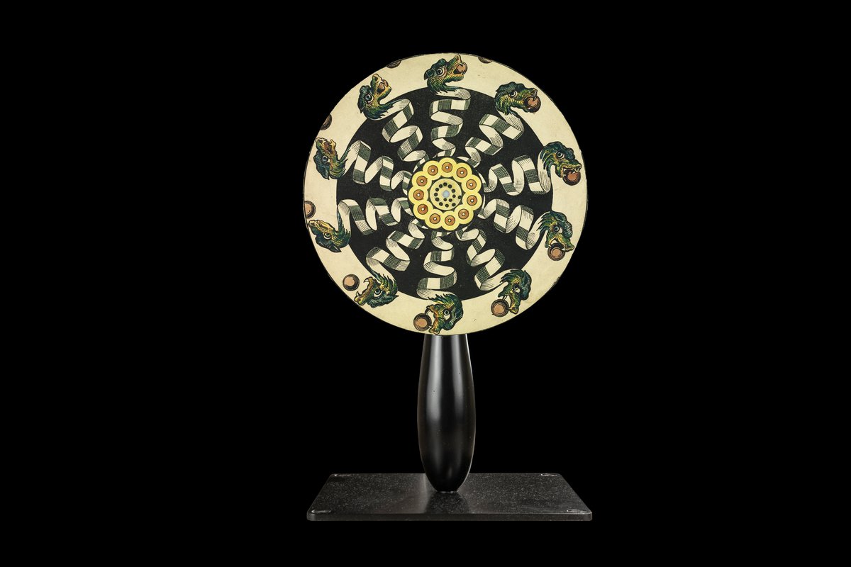 Invented almost simultaneously in 1832 by Joseph Plateau in Brussels and Simon von Stampfer in Berlin, the phenakistoscope was an important predecessor of the zoetrope, and its infinitely looping animation is reminiscent of today’s GIFs.