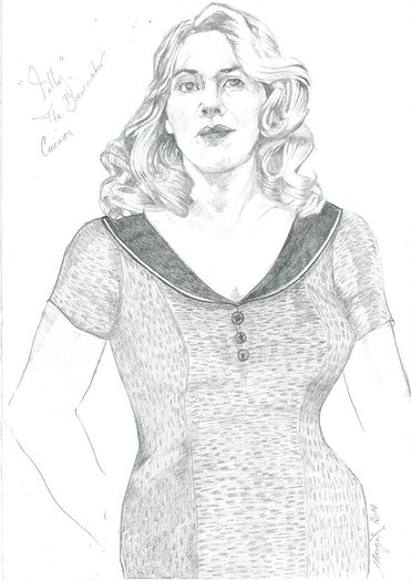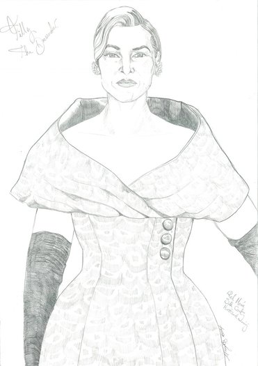 Black and bronze dress drawing with Kate Winslet for The Dressmaker