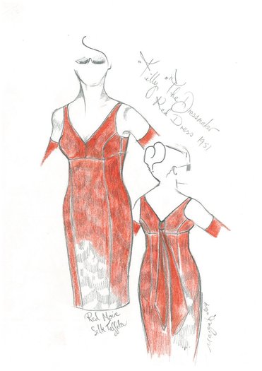 Red dress drawing for The Dressmaker