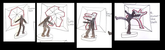 This motion-capture artwork projects a synthetic self, but it all started with a simple drawing, which you can see to your right. Sketches are the first step ..