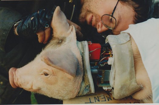 Production photo of Farmer Arthur Hoggett (James Cromwell) and director Chris Noonan