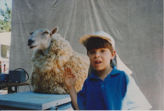Production photo of Farmer Arthur Hoggett (James Cromwell) and director Chris Noonan